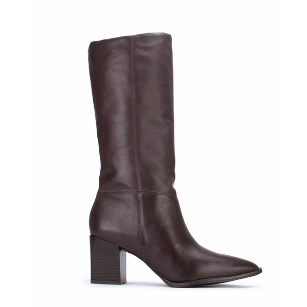 Bota Couro Paloma Cano Longo Salto Bloco Design Minimal Lia Line