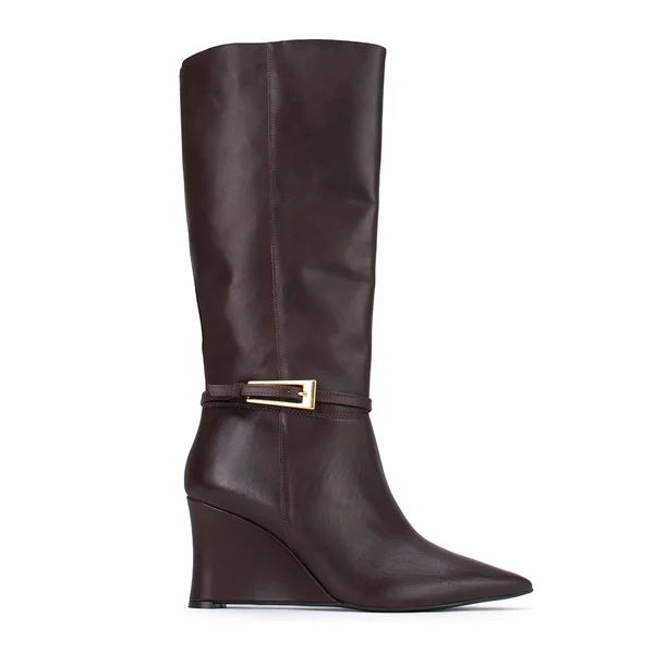 Bota Couro Vitória Salto Anabela Detalhe Fivela Bico Fino Lia Line