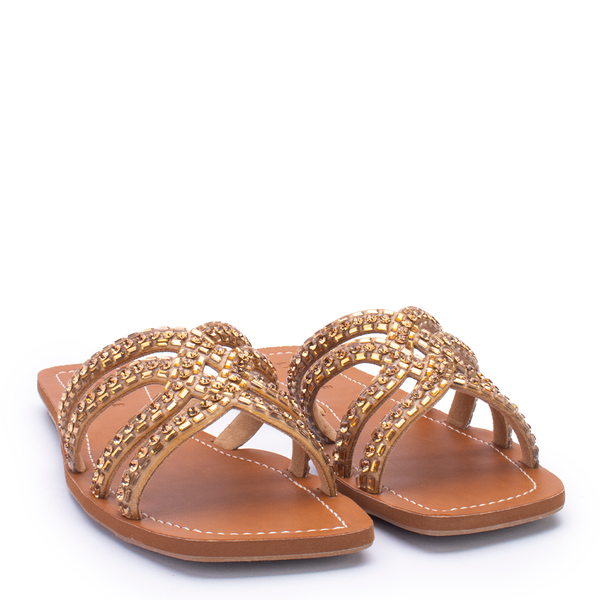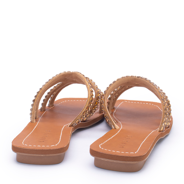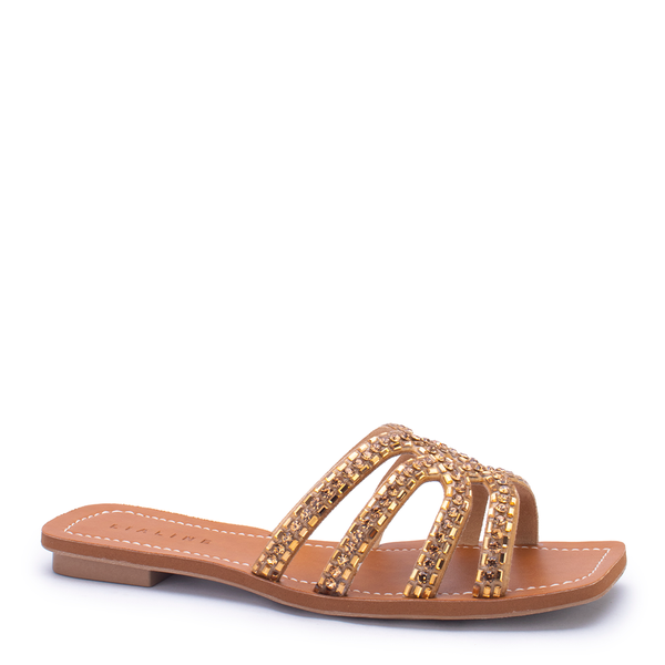 Sandália Couro Amélia Flat Detalhe Brilhos Lia Line Dourado
