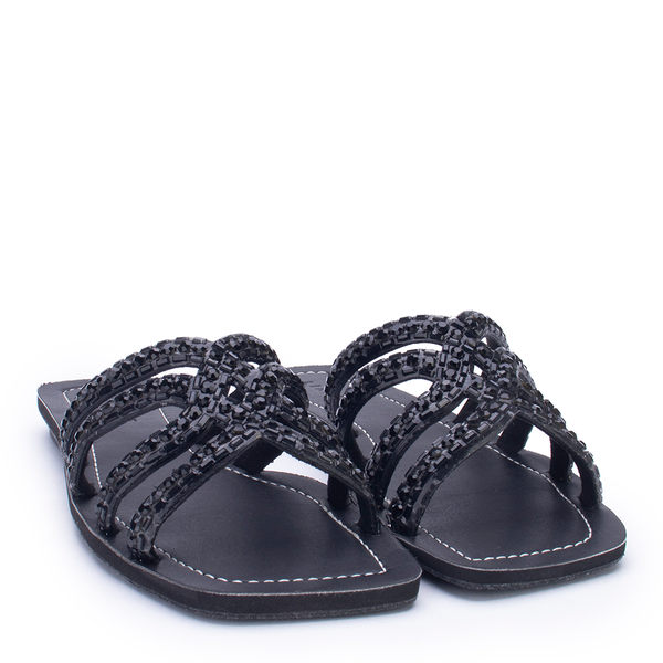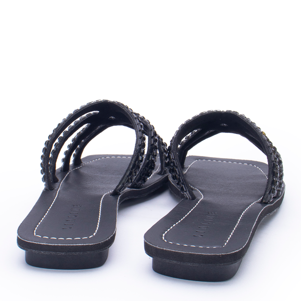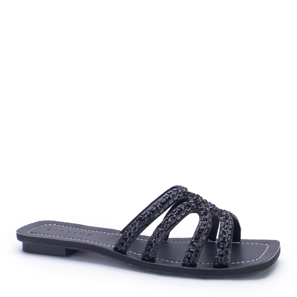 A rasteira Lia Line é o toque de brilho que o seu look precisa. Com tiras entrelaçadas e acabamento especial, é ideal para dias quentes e produções leves. Sofisticada e confortável, vai do dia à noite com facilidade. Aposte!