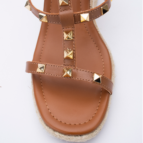 Sandália Anabela Lia Line que combina glamour e conforto em um único modelo. O acabamento metalizado traz brilho na medida certa, enquanto as tiras com studs dourados adicionam um toque fashion e moderno. O salto em corda natural eleva o visual com leveza, garantindo estabilidade e conforto para usar do dia à noite com muito estilo.