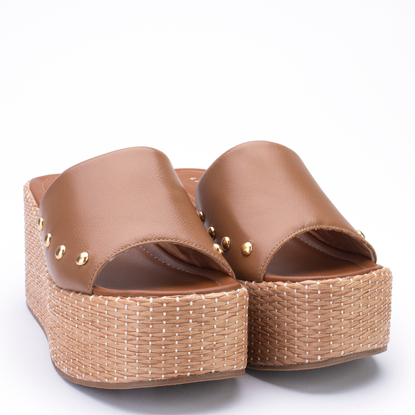 Com um visual que mistura uma vibe cool e sofisticada, essa sandália feminina de couro é daquelas peças que transformam o look sem esforço. O cabedal em couro traz um shape clean e marcante, enquanto o salto alto plataforma adiciona aquele mood urbano com pegada natural. O toque final fica por conta das tachas ao redor do cabedal — detalhe moderno que eleva o design com personalidade. Ideal pra quem ama uma sandália de couro que entrega estilo, conforto e muita atitude.