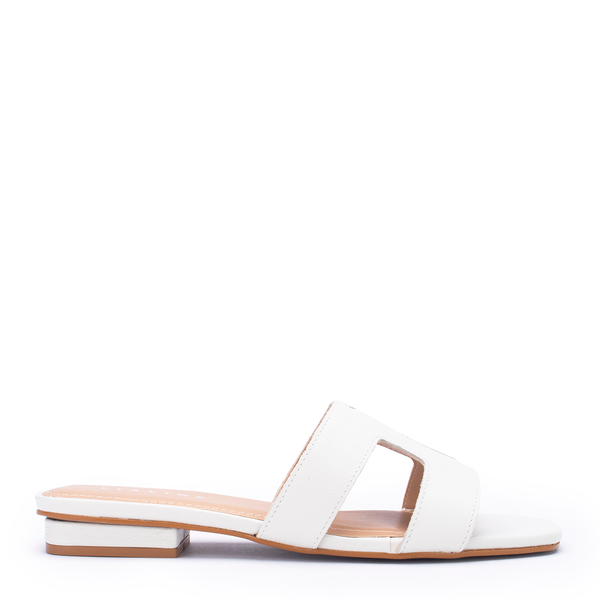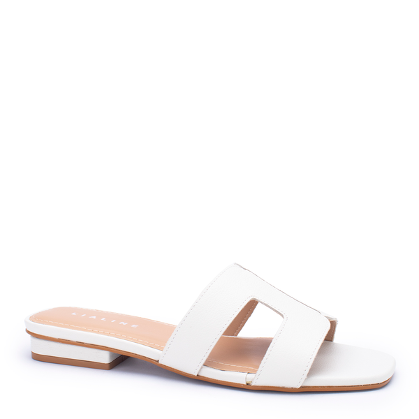 Sandália Couro Yara Flat Metalizada Lia Line Snow