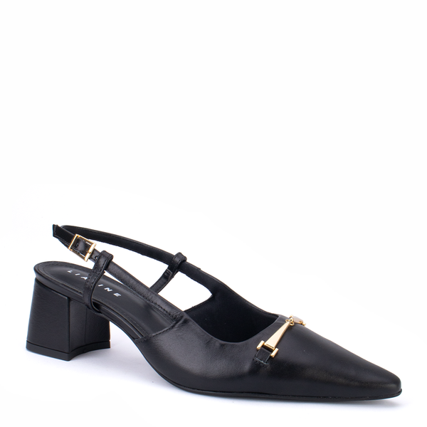 SCARPIN COURO VERA SLINGBACK SALTO BLOCO DETALHE FIVELA BICO FINO LIA LINE
